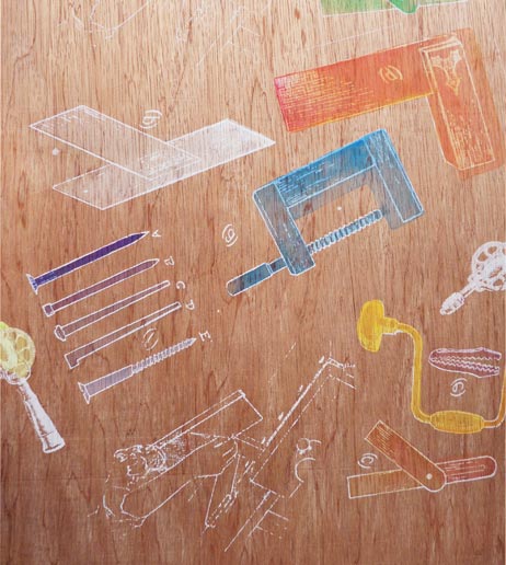 Screenprint and gouache paint on plywood